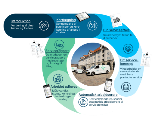 Vi sikrer en struktureret og gennemtænkt proces fra første dialog til løbende service og opfølgning. Alle løsninger tilpasses den enkelte kunde, så du får en serviceaftale, der matcher dine behov og din drift.